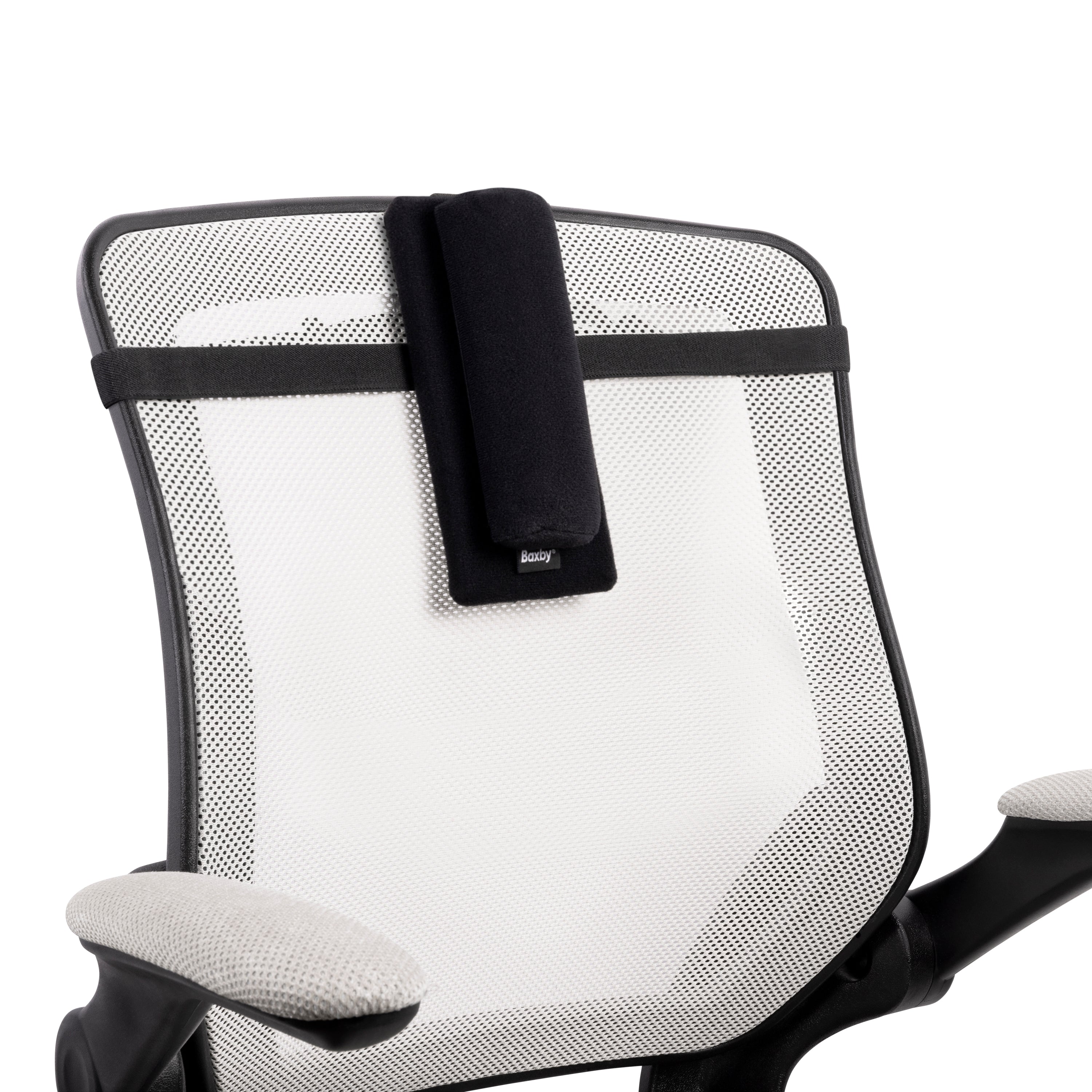 - Then slide Baxby over the backrest of the chair. Just get it on there to start...it doesn't have to be perfectly placed.